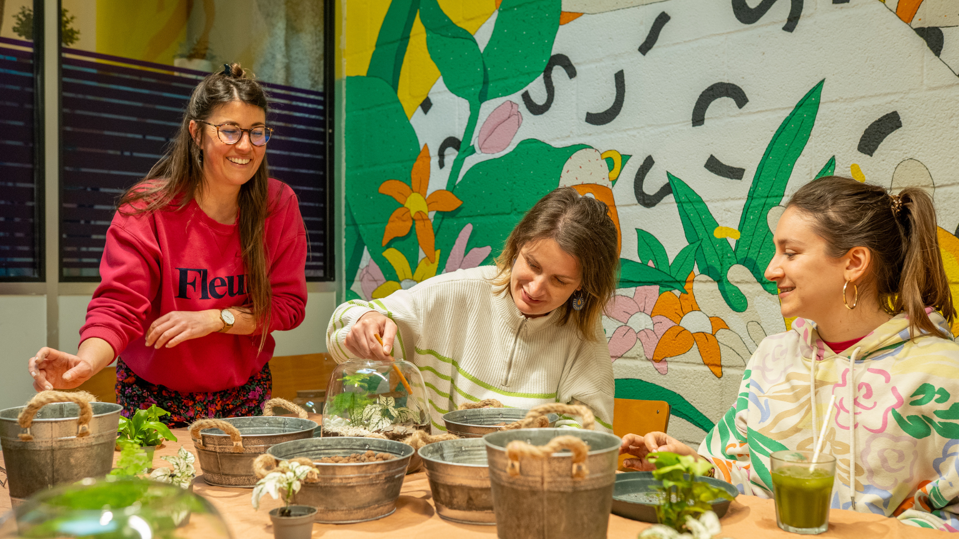 Un atelier terrarium dans la bonne humeur ! (Crédit photo : David Levêque)